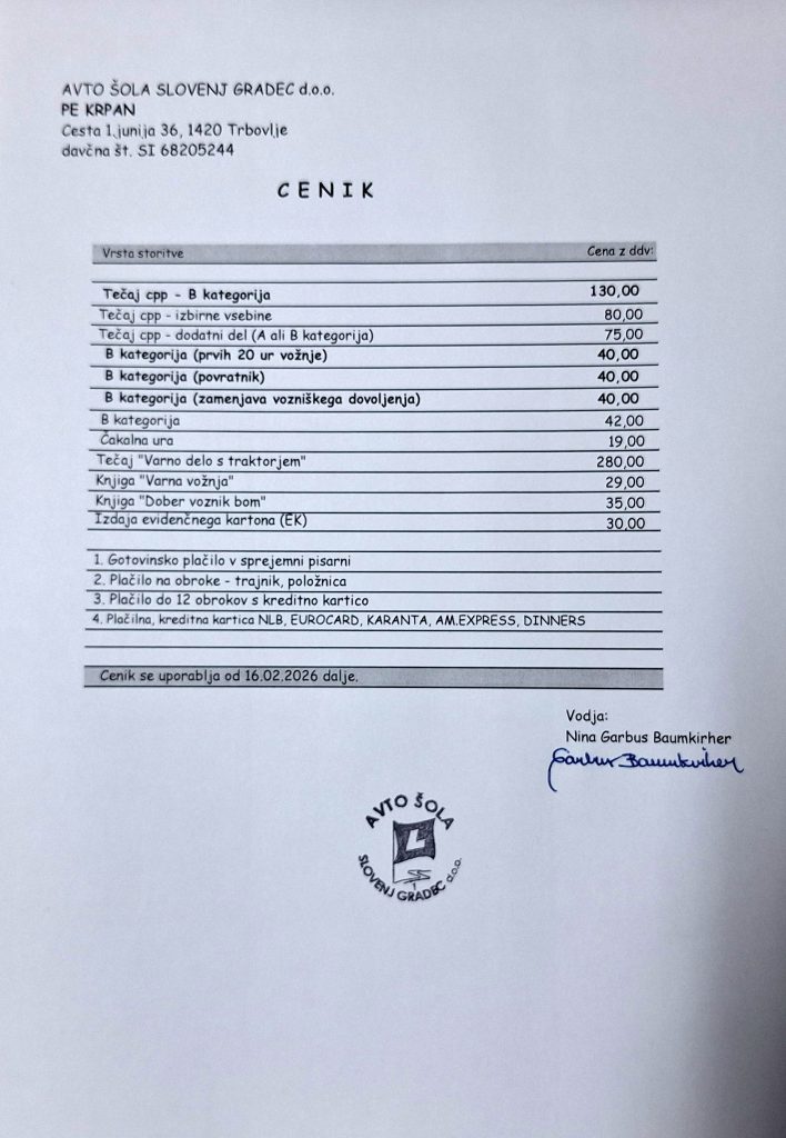 Obročno plačevanje je možno na POLOŽNICE ali preko TRAJNIKA, in sicer do 12 obrokov – brez obresti.
